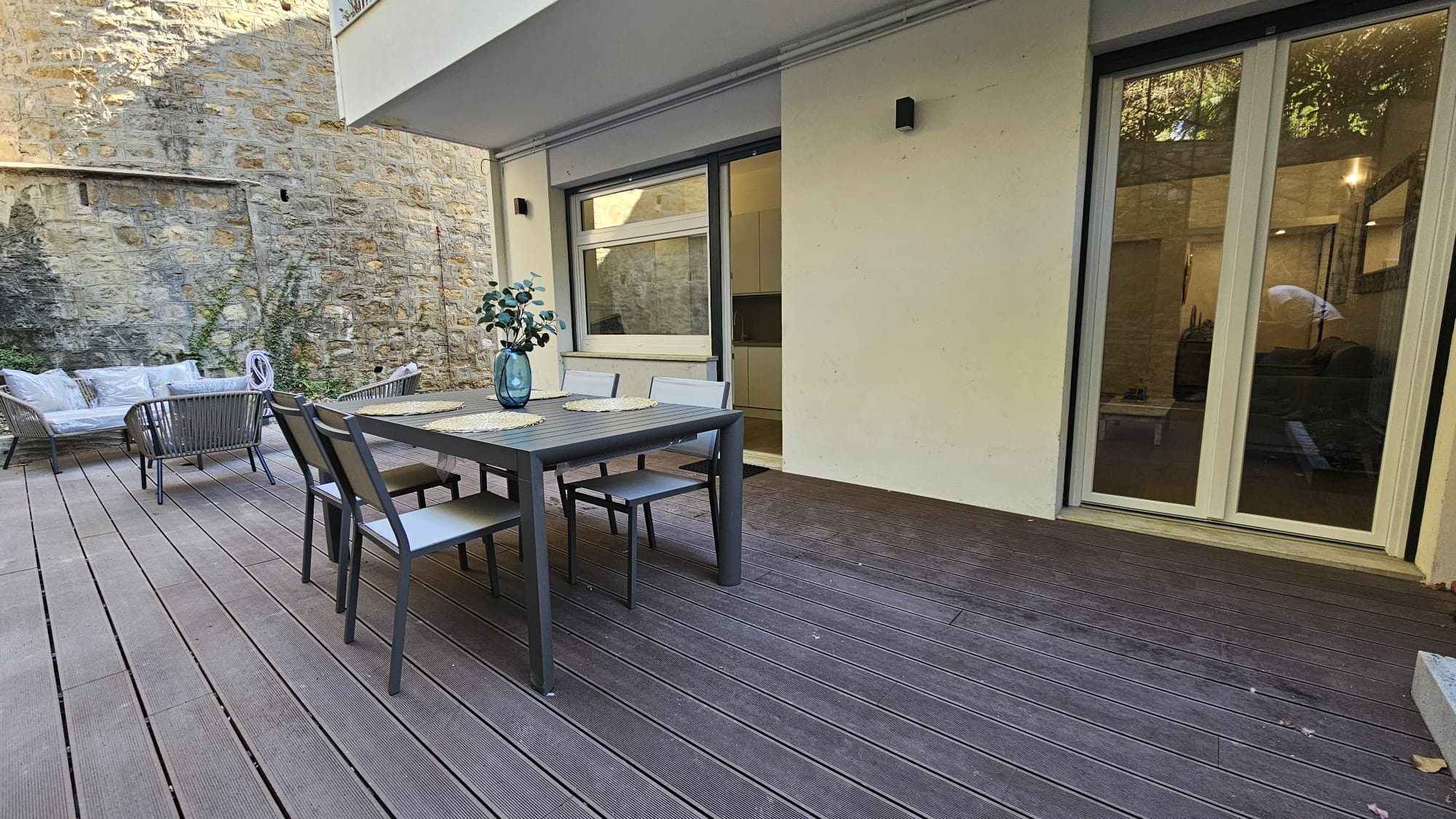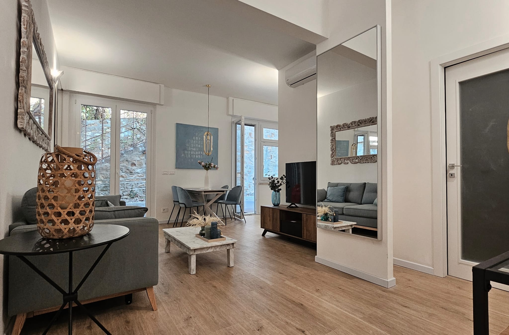 In an elegant residential setting, a short walk from the center and the sea, we offer for sale a first-floor apartment of approximately 70 square meters with a private furnished garden of 90 square meters.