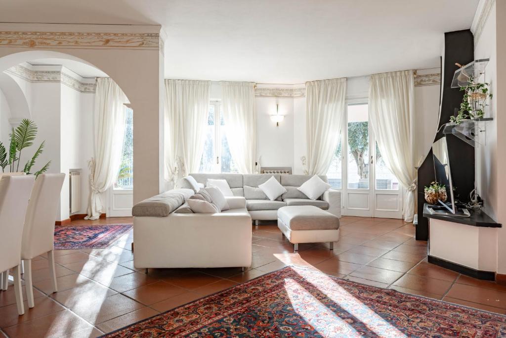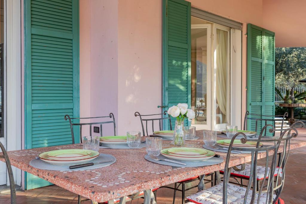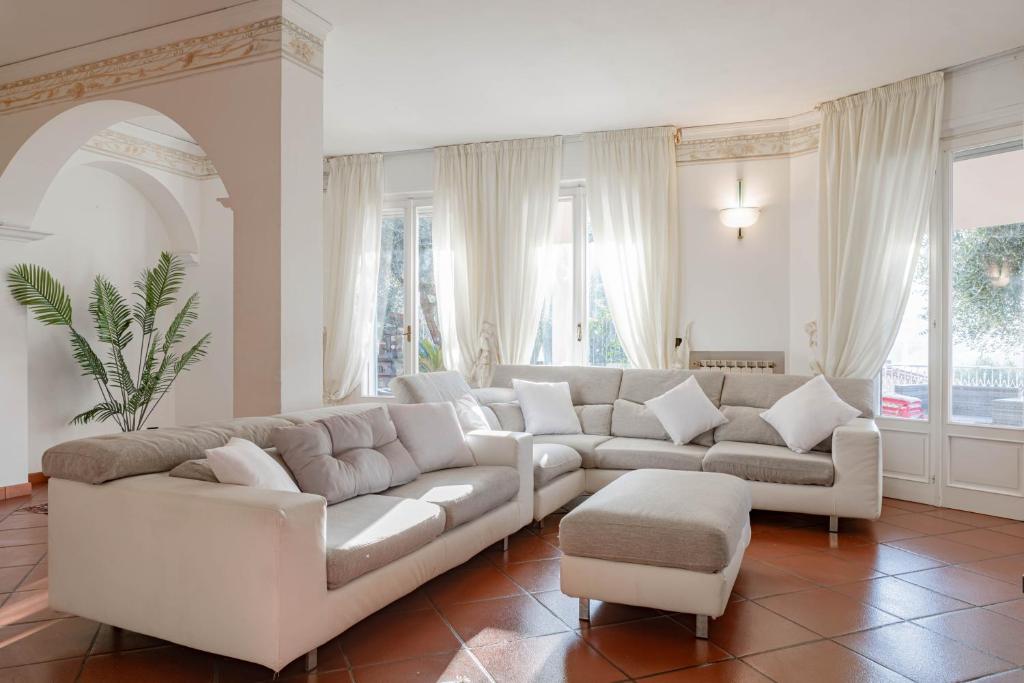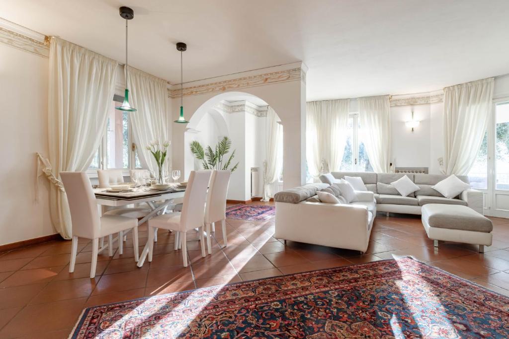 In Sanremo, the pearl of the Riviera dei Fiori, this elegant villa is for sale, surrounded by a...